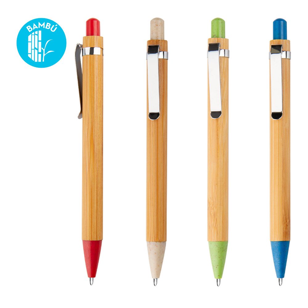 Bolígrafo ecológico con sistema retráctil y clip metálico (Bolígrafo/Esfero)
