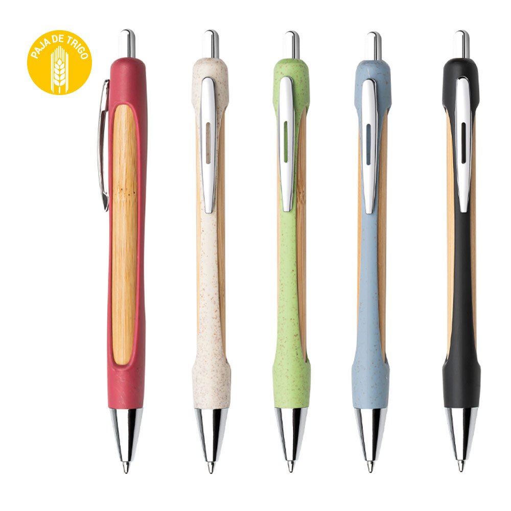 Bolígrafo ecológico elaborado en bambú con cubierta de paja de trigo. Su clip y punta metálicos brindan un toque elegante al diseño. Sistema retráctil. (Bolígrafo/Esfero)