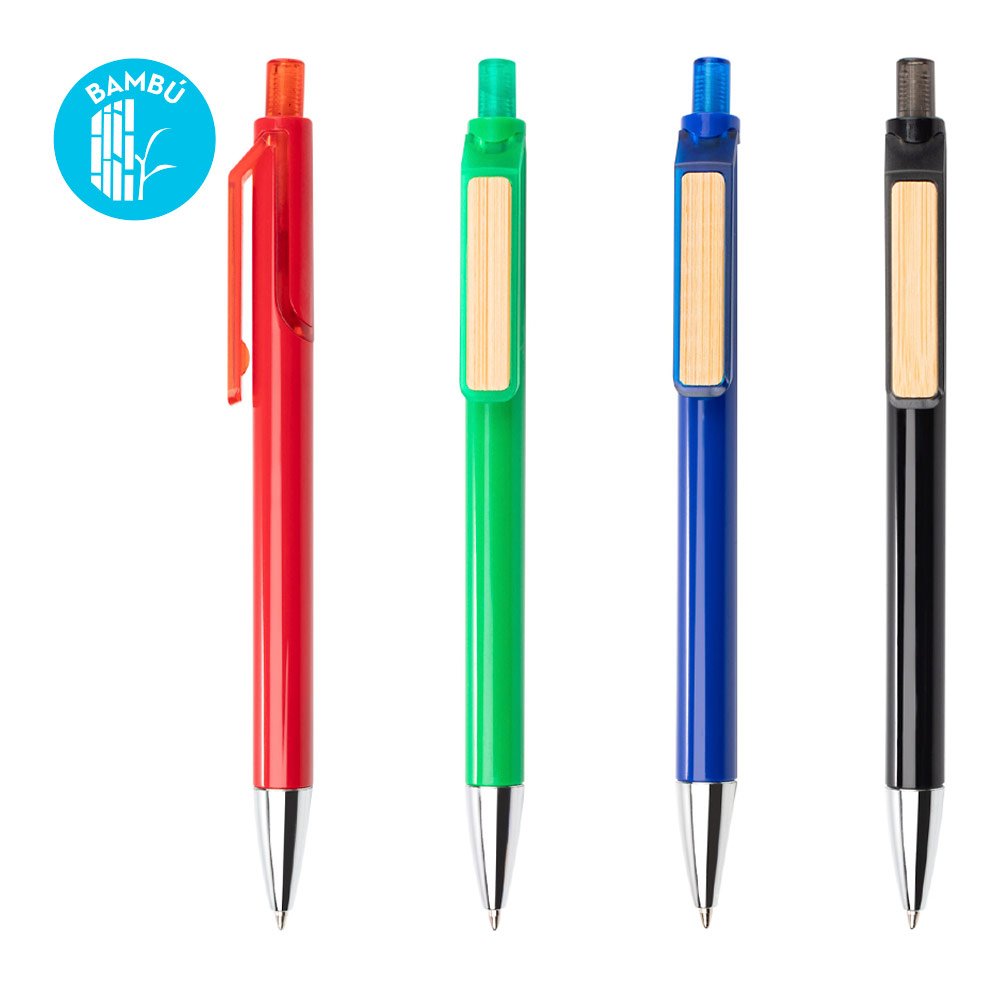Bolígrafo de plástico con sistema retráctil y clip de bambú que puede ser usado como espacio de marca. (Bolígrafo/Esfero)
