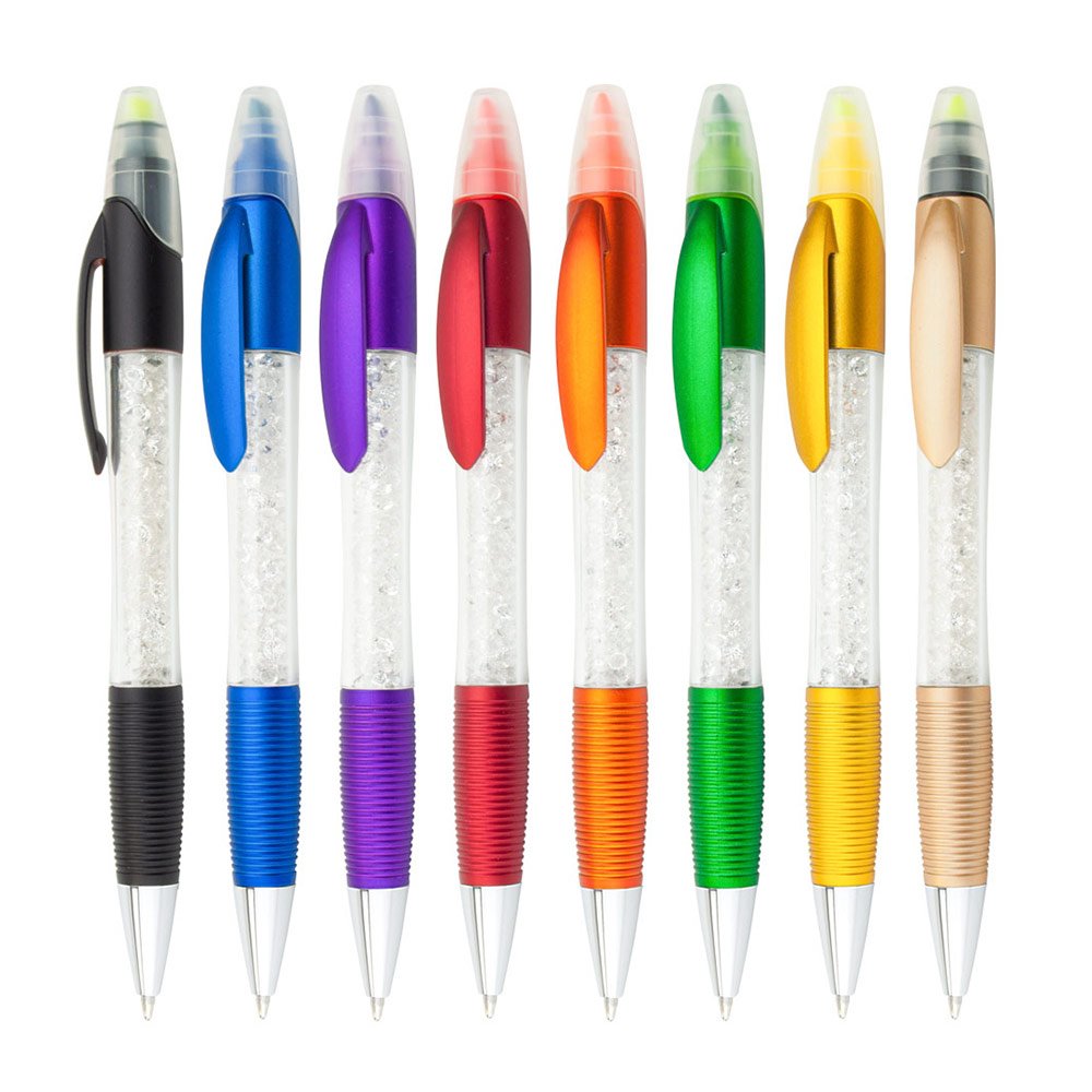 Bolígrafo plástico sistema twist y resaltador con tapa. Cristales en la parte central para dar diseño (Bolígrafo/Esfero)