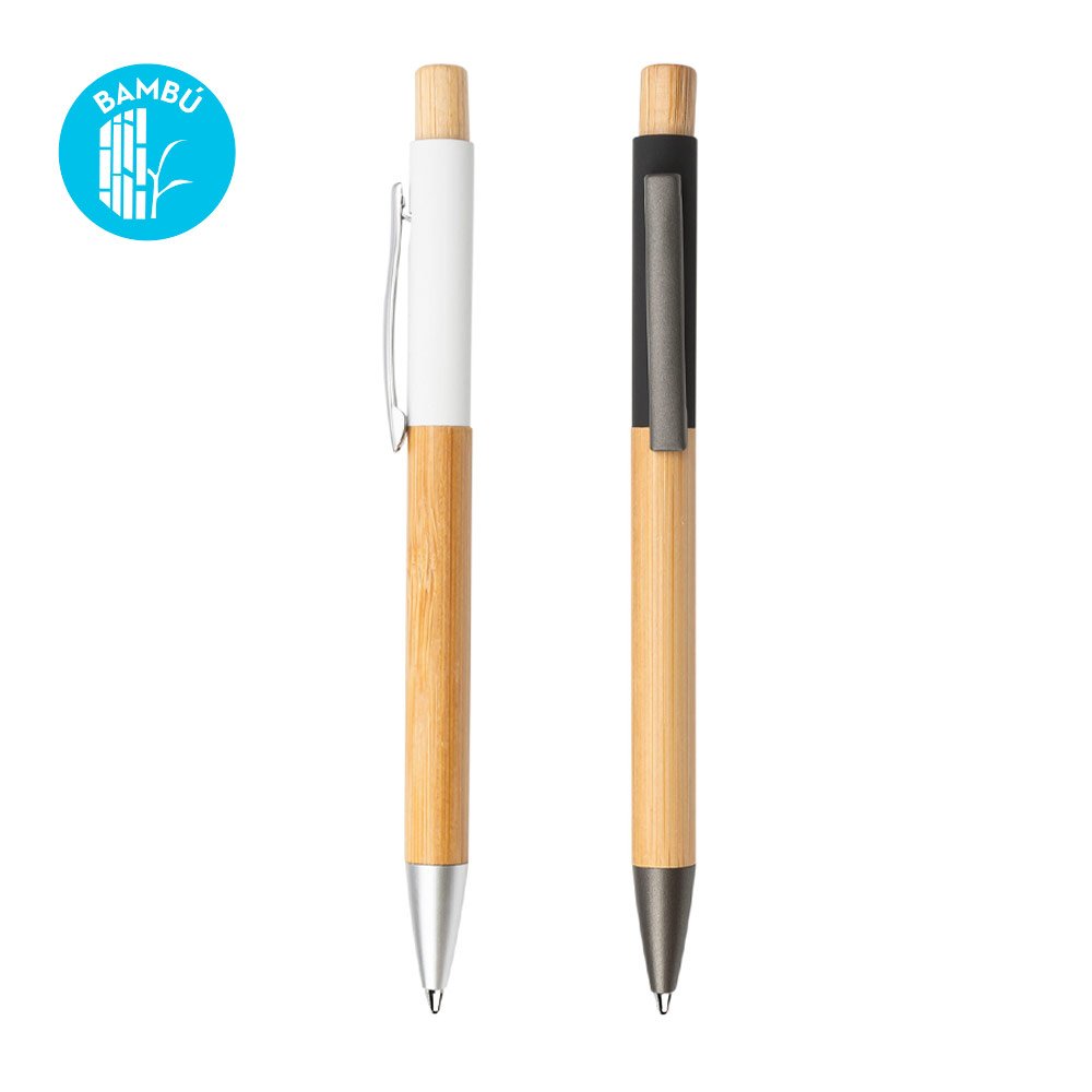 Bolígrafo ecológico elaborado en bambú, con sistema retráctil. Clip y punta metálicos. (Bolígrafo/Esfero)