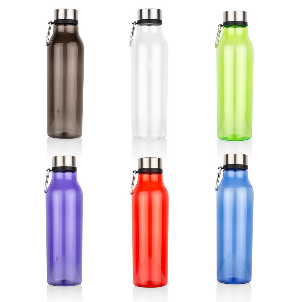 Botella deportiva con diseño compacto; la hace ideal para llevar al gimnasio, la oficina o actividades al aire libre. Cuenta con tapa de cierre giratorio que garantiza un sellado seguro, y un gancho carabinero integrado que permite sujetarla fácilmente a mochilas, bolsos o cinturones. Capacidad: 600 ml / 20 Oz.