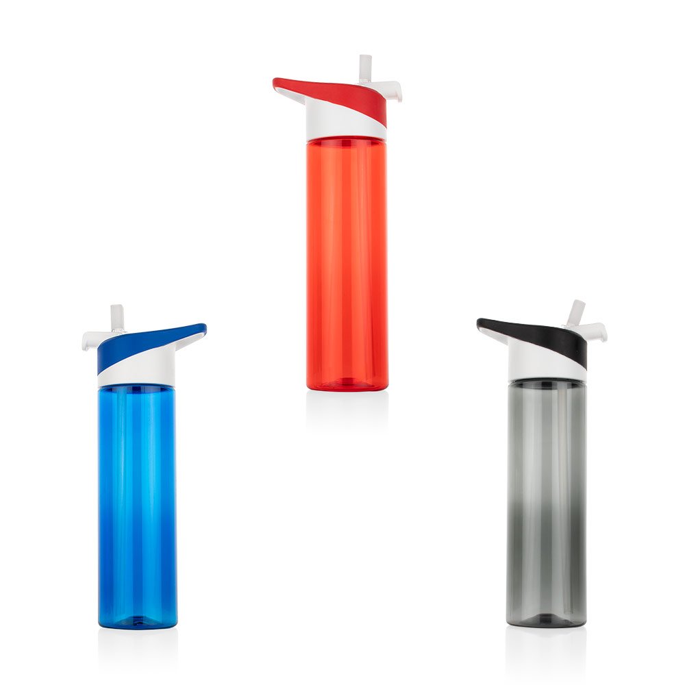 Botella deportiva con tapa rosca, agarradera integrada y pitillo con protector para mayor higiene. Diseño práctico y cómodo, ideal para hidratarte en cualquier momento. Capacidad: 650 ml / 22 Oz.