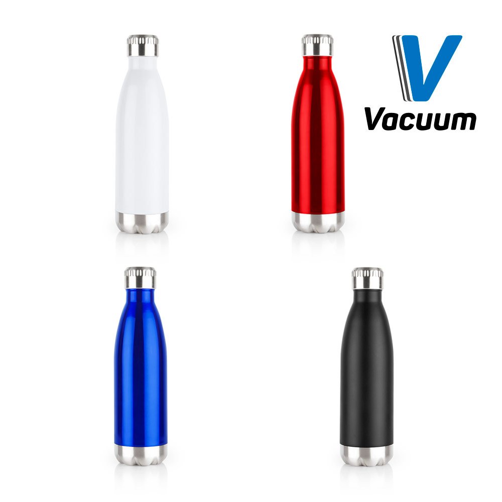 Botella en acero doble pared con tapa rosca. Evita la condensación y aísla las bebidas calientes, ideal para insertar cubos de hielo pequeños y evitar goteos, mantiene las bebidas frías por 24 horas y las bebidas calientes por 12 horas. Capacidad 500 ml / 17 Oz.