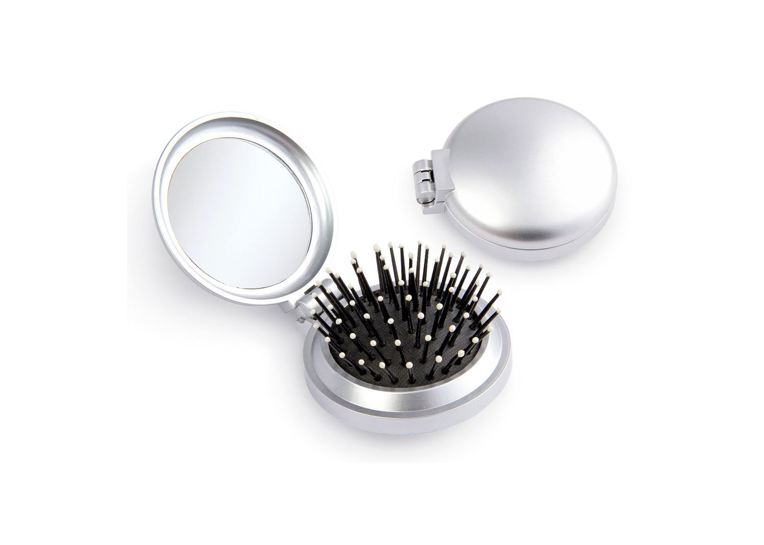 Espejo con cepillo redondo para cabello.