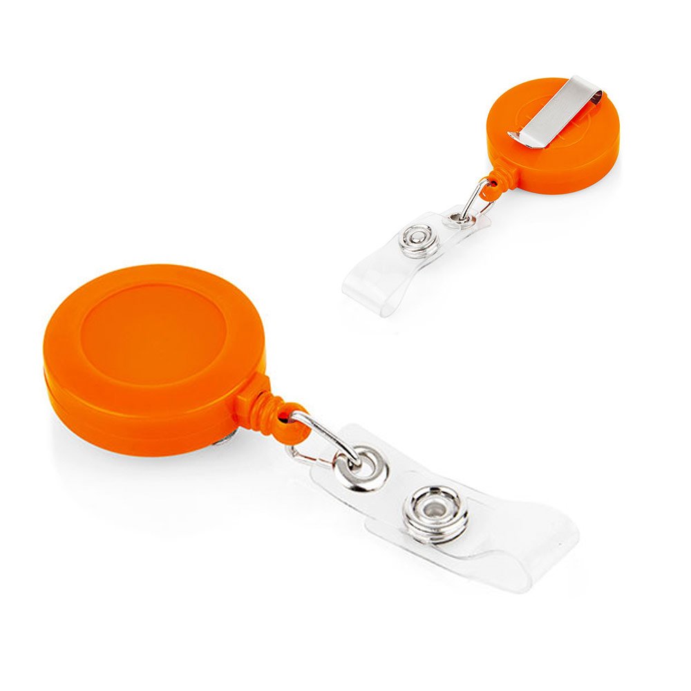 Portacarné con sistema retráctil y clip para bolsillo.