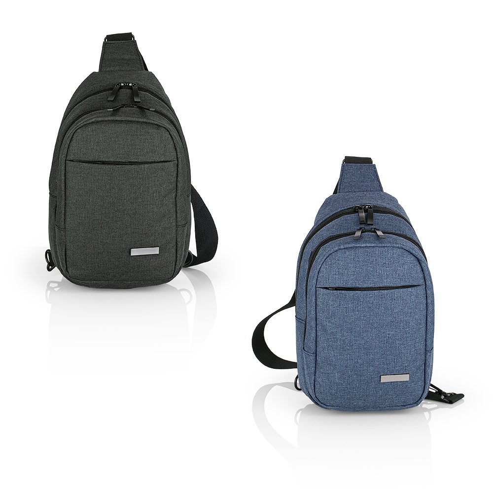 Manos libres con cargadera ajustable, bolsillo frontal, medio y principal con cremallera, placa metálica para marca en láser, compartimentos internos para organizar mejor.