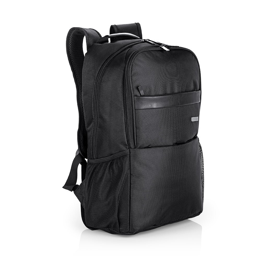 Morral Portalaptop con espaldar ergonomico, con cargaderas ajustables y acolchadas, 2 bolsillos exteriores, 1 bolsillo medio con compartimentos especiales en el interior, el bolsillo principal tiene un compartimiento para dispositivos portatiles de 15″, 2 bolsillos laterales en malla ideales para botellas y cables . correa en la parte trasera para ajustar el morral a un trolley, Incluye placa metálica para marca láser. Volumen aproximado: 17 litros.
