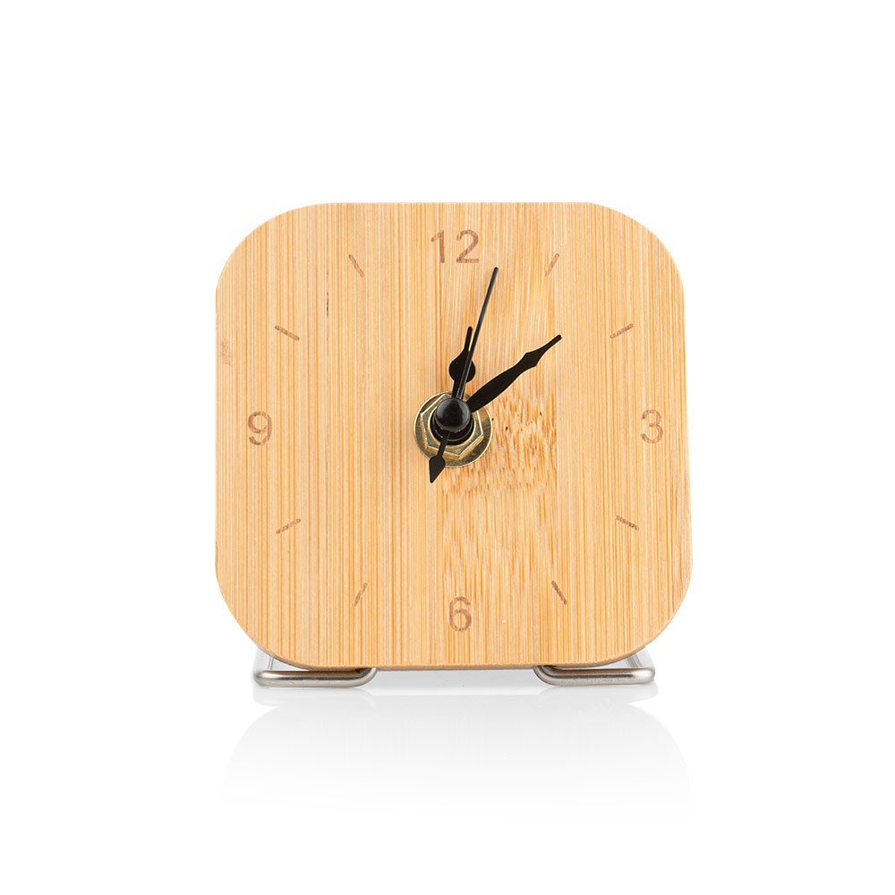 Reloj de escritorio en bambú con manecillas en acero. Funciona con 1 batería AAA (no incluida).