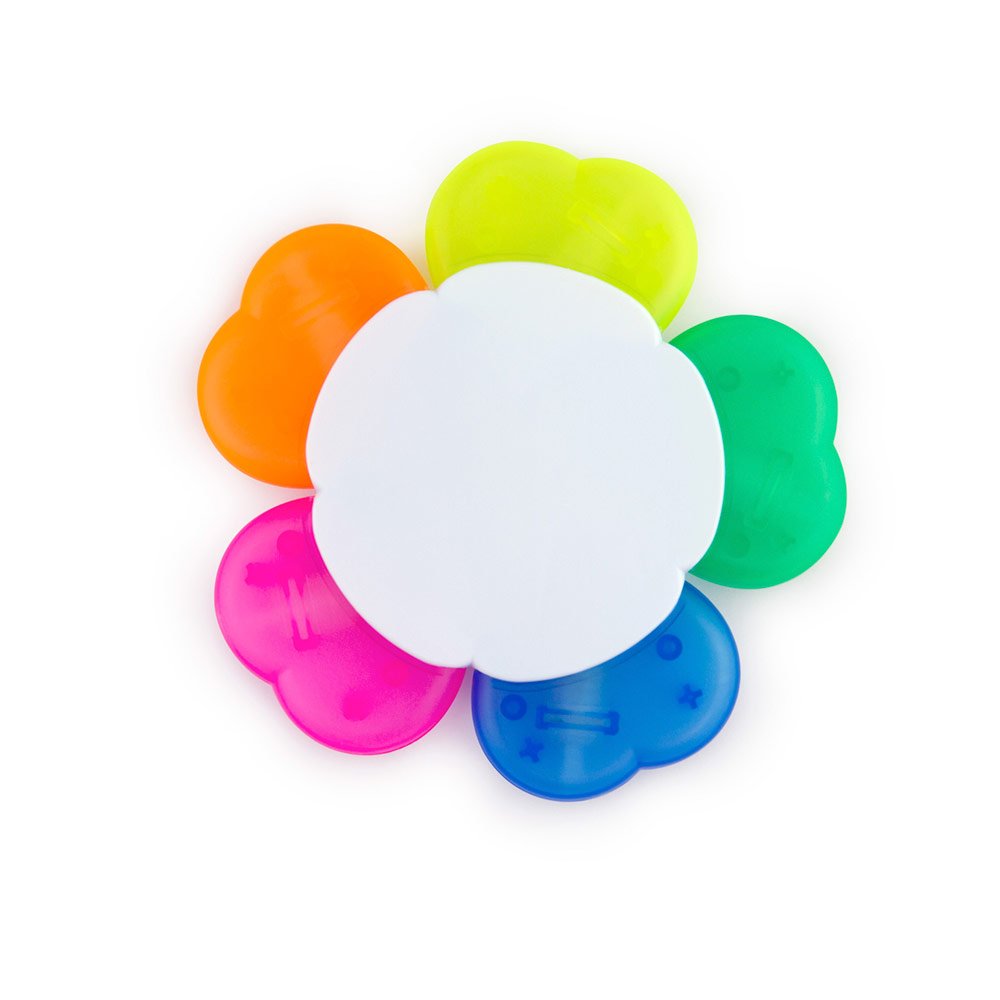 Set de 5 resaltadores en parafina con forma de flor. No se seca. Colores surtidos.