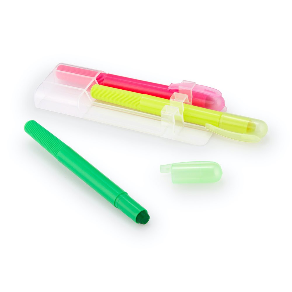 Set de 3 resaltadores en parafina. No se seca. Con tapa y clip. Sistema Twist.