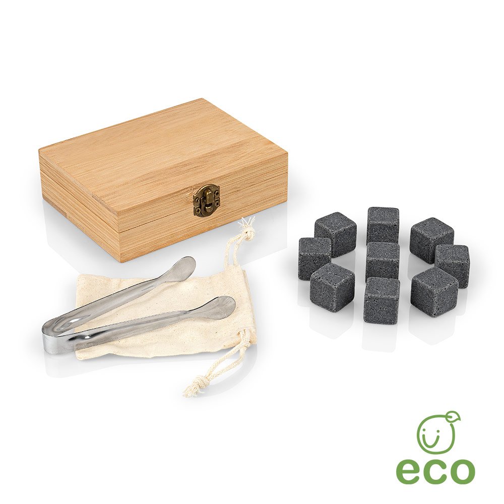 Conserva la temperatura ideal de tus bebidas frías con el mejor set de cubos de hielo, no se derriten y puedes usarlos las veces que desees. Modo de uso: Almacena las piedras en el congelador para mantenerlas a la temperatura ideal y úsalos en tus bebidas. Incluye 9 cubos, pinzas, bolsa de tela y caja de Bambú.